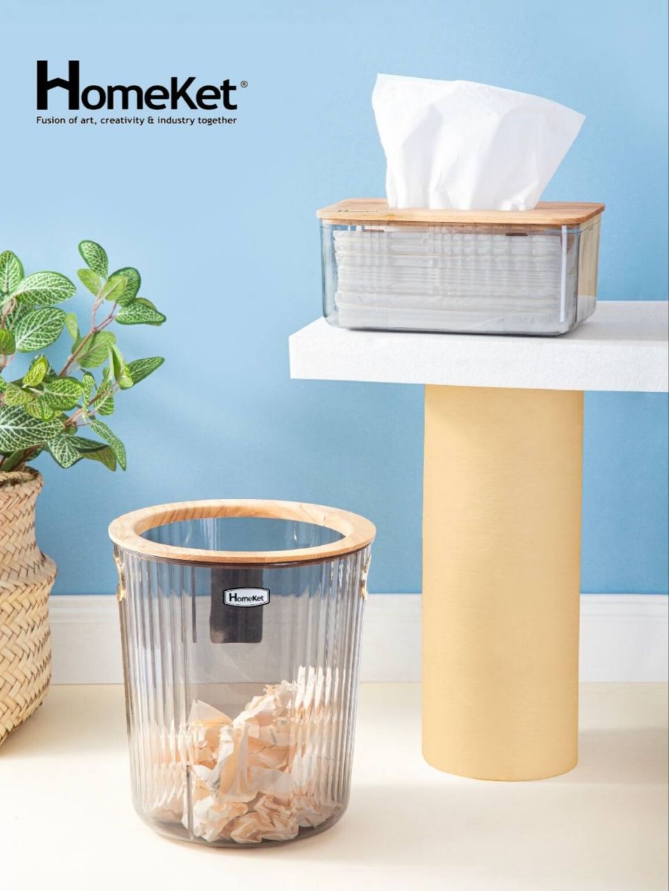 ست سطل و جعبه دستمال درب چوبی هومکت
