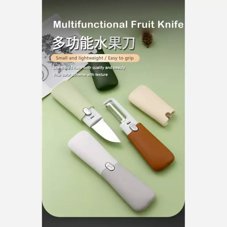این وسیله از یک پوستکن و یک چاقو تشکیل شده است. از قسمت پوستکن برای پوستگیری پوستهها و سبزیجات استفاده کنید. از سمت چاقو برای برش و برش استفاده کنید که با پوست کندن و جدا کردن چندین سبزی و میوه از جمله سیب زمینی، سیب، گلابی، هویج، خیار، انبه، کیوی، پرتقال و غیره بسیار کار می کند.