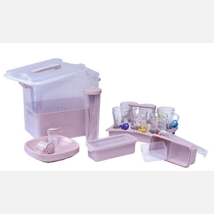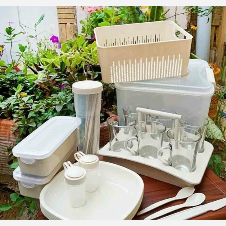 سرویس چای خوری صدف شامل: 6عددلیوان نشاندار 6عددپیش دستی 6عددچاقو 6عددقاشق چای خوری 2عددنمکپاش 2عدد جعبه دربدار 1عدد سبد 1عددسینی دسته دار 1 عددباکس دربدار