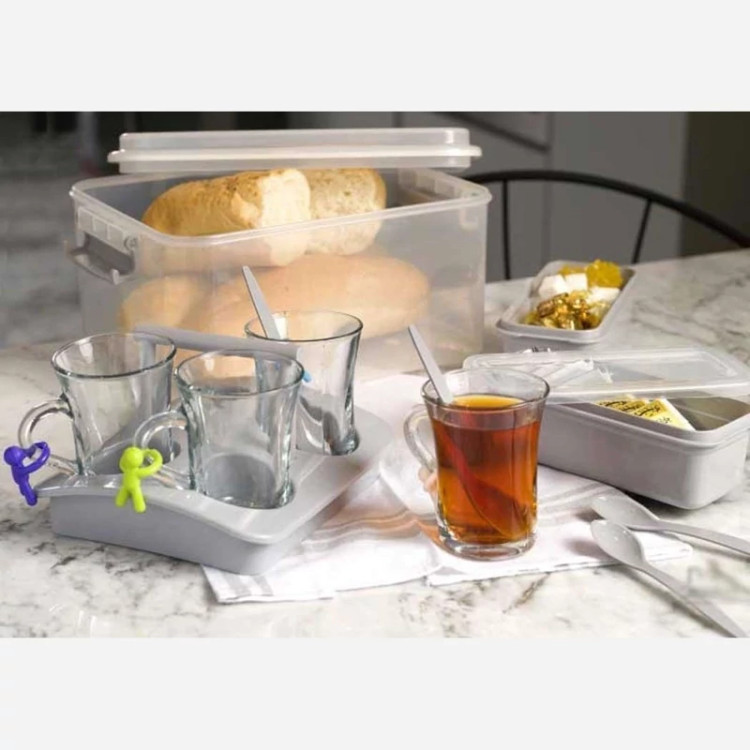 استفاده از سرویس صبحانه خوری صدف تمام اقلام مورد نیاز برای سرو یک صبحانه دلپذیر در آغوش طبیعت مهیا میباشد زیرا که این سرویس صبحانه خوری مناسب برای استفاده در زمان پیک نیک و تفریح میباشد. سرویس مسافرتی صدف دارای چهار عدد لیوان شیشه ای دسته دار و یک سینی برای قرار دادن لیوان ها داخل محفظه ای که در داخل سینی طراحی شده است میباشد. اقلام دیگری که داخل این سرویس مسافرتی قرار داده شده است دو عدد ظرف مستطیلی هم اندازه برای قرار دادن مواد غذایی لازم برای یک صبحانه دلپذیر در مسافرت میباشد و همچنین دو عدد کاسه چهار گوش برای قند و چای در این سرویس است و همچنین چهار عدد قاشق چای خوری همراه این سرویس صبحانه خوری موجود میباشد که براحتی میتوانید بعد از سرو صبحانه تمام این اقلام را داخل باکس شفافی که محل قرار دادن اقلام این ظروف پلاستیکی است، بگذارید. رنگ های موجود برای این محصول: کالباسی