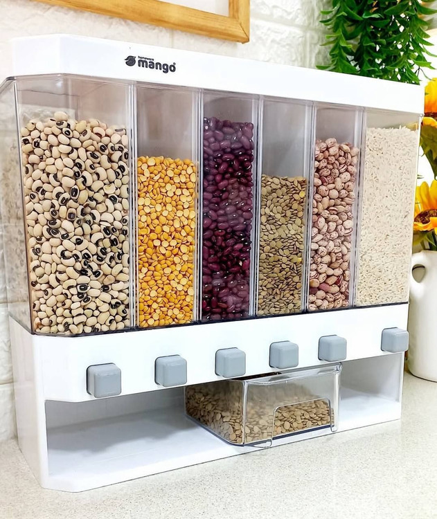 یکی از نکات قابل توجه در طراحی کشو حبوبات دکمه ای ۶ خانه، وجود دکمهای است که به شما این امکان را میدهد تا به راحتی محتویات کشو را برداشت کنید. به همراه این محصول یک پیمانه ارائه میگردد که به راحتی در زیر کشوها حرکت کرده و در صورت نیاز به برداشت محتوا از بخش، میتوانید با استفاده از دکمهای که تعبیه شده، آن را بردارید. این طراحی هوشمندانه، کار با کشو را بسیار آسان و سریع میکند.