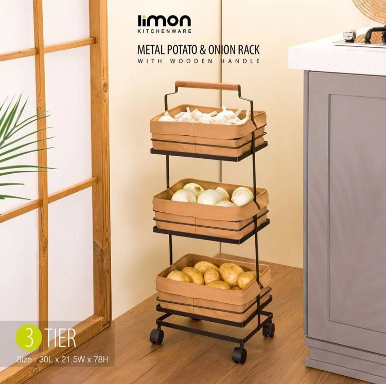جای سیب زمینی و پیاز ۳ طبقه دسته چوبی لیمون