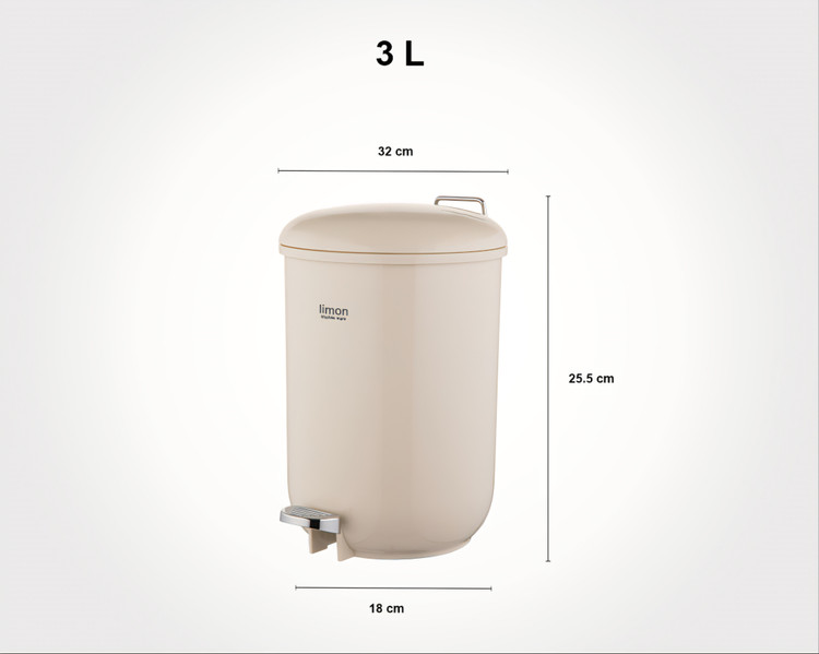 ابعاد: جنس: پلاستیک مقاوم و باکیفیت پدالی دوجداره ظرفیت: 3 لیتر ابعاد: قطر بالا 32 قطر پایین 18 ارتفاع 25.5 سانتیمتر