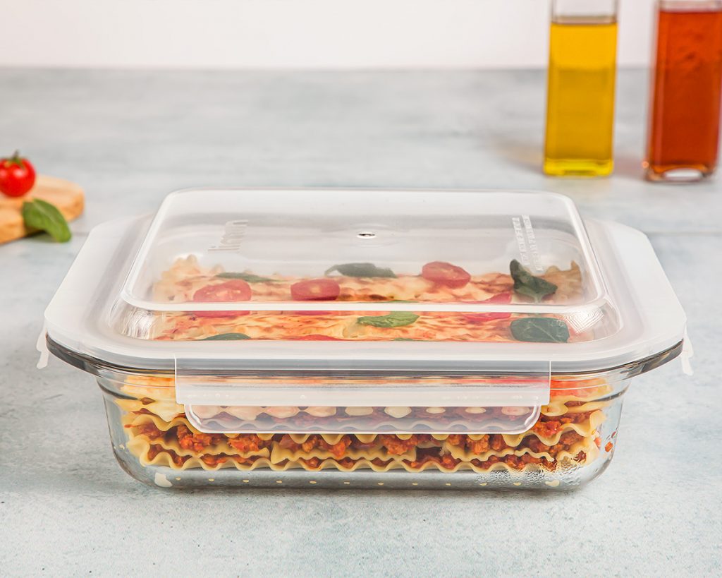ظرف شیشه ای مربع دربدار ۲.۱ لیتر