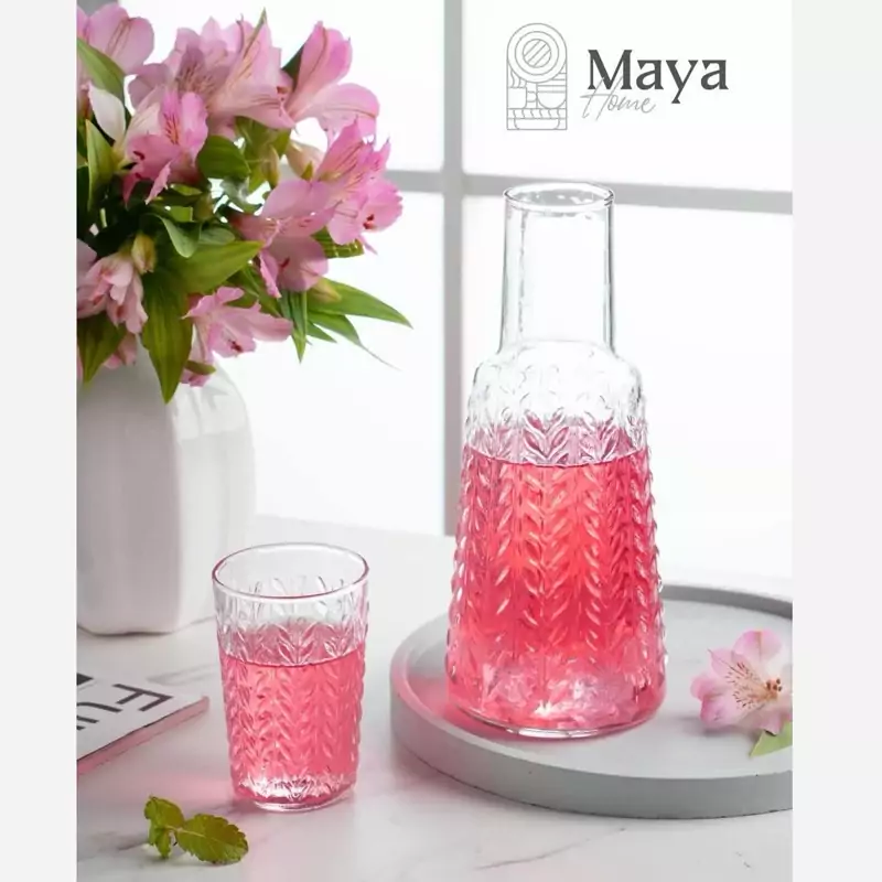 ♦️پارچ شب طرح گندم ابعاد: قطر 9.5 و ارتفاع 26.5 سانتی متر کیفیت کار ایرانی و جنس شیشه ای مناسب:استفاده كنار تخت ،روی میز و … قیمت:195