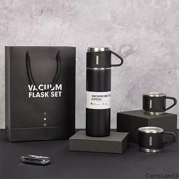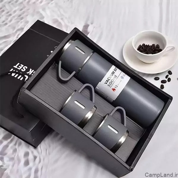 ♦️فلاسک سه لیوانه برند vacuum flask set 0.5 liter استیل ضد زنگ 304 پلاستیک BPA Free به همراه 3 عدد لیوان جعبه و بسته بندی مناسب هدیه قیمت:328